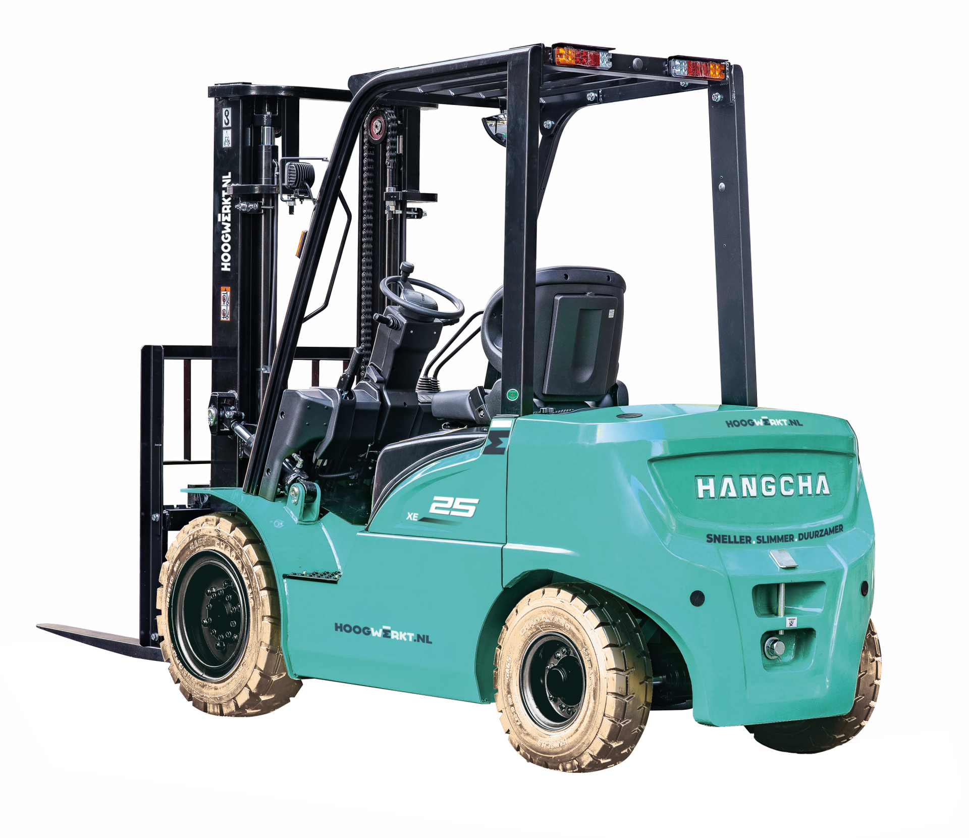 De krachtige 80V/230Ah Li-Ion batterij met on-board 65A dual-voltage lader (380V aansluiting) zorgt voor efficiënt laden en langdurige inzetbaarheid. De truck haalt een rijsnelheid tot 16 km/u en heeft een eigen gewicht van 3.860 kg, wat stabiliteit en betrouwbaarheid garandeert.
