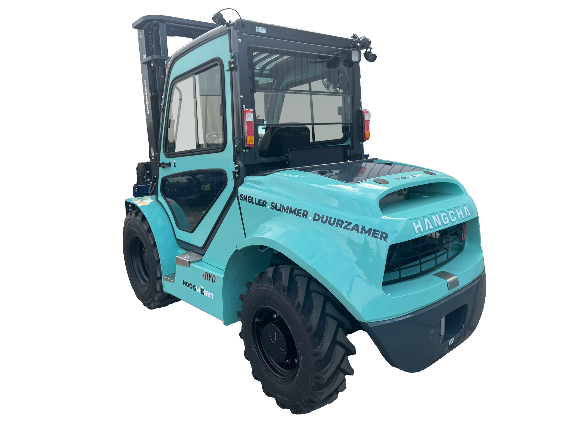 De heftruck levert uitstekende prestaties op uiteenlopend terrein dankzij de inschakelbare 4x4-aandrijving en het differentieelslot voor verbeterde tractie. Het voorzetapparaat beschikt over sideshift en vorkversteller, inclusief lastrek, voor flexibel en efficiënt palletverwerking.