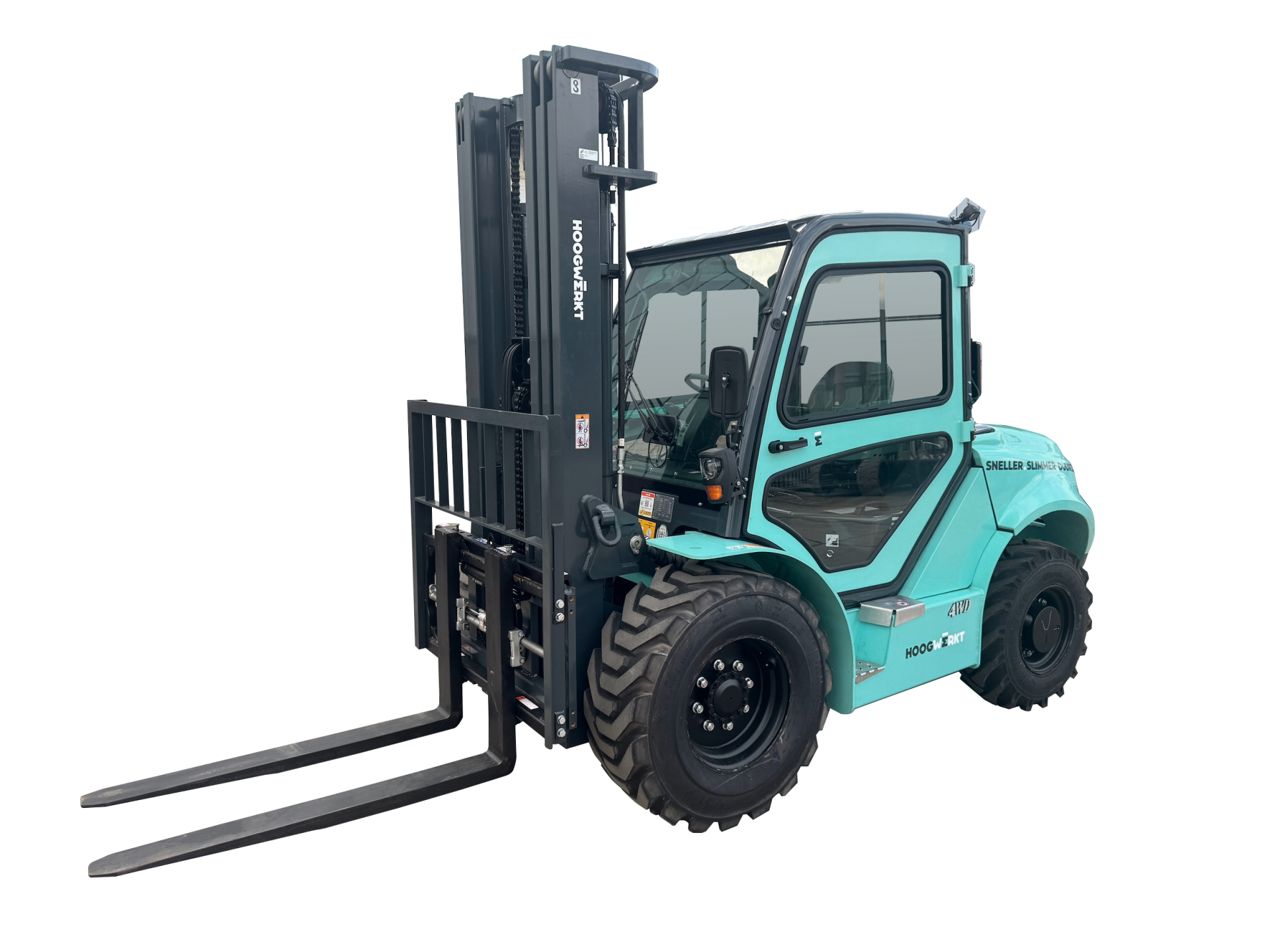 De heftruck levert uitstekende prestaties op uiteenlopend terrein dankzij de inschakelbare 4x4-aandrijving en het differentieelslot voor verbeterde tractie. Het voorzetapparaat beschikt over sideshift en vorkversteller, inclusief lastrek, voor flexibel en efficiënt palletverwerking.