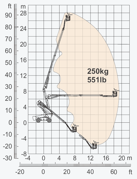 Een veelzijdige, volledig elektrische kniktelescoophoogwerker met een maximale werkhoogte van 28 meter. Dankzij het zijdelings bereik van ca 19 meter en een platformcapaciteit van 250 kg biedt deze machine uitstekende flexibiliteit bij werkzaamheden op moeilijk bereikbare plaatsen. Deze kniktelescoophoogwerker is uitgerust met een efficiënte lithium-accu, waardoor hij stil en emissievrij opereert, ideaal voor zowel binnen- als buitengebruik. De jib-arm en het roterende platform zorgen voor nauwkeurige positionering op hoogte. Dankzij de compacte bouw en non-marking banden is deze hoogwerker bovendien zeer geschikt voor werkzaamheden in krappe of gevoelige omgevingen, zoals magazijnen, fabriekshallen en stedelijke gebieden.