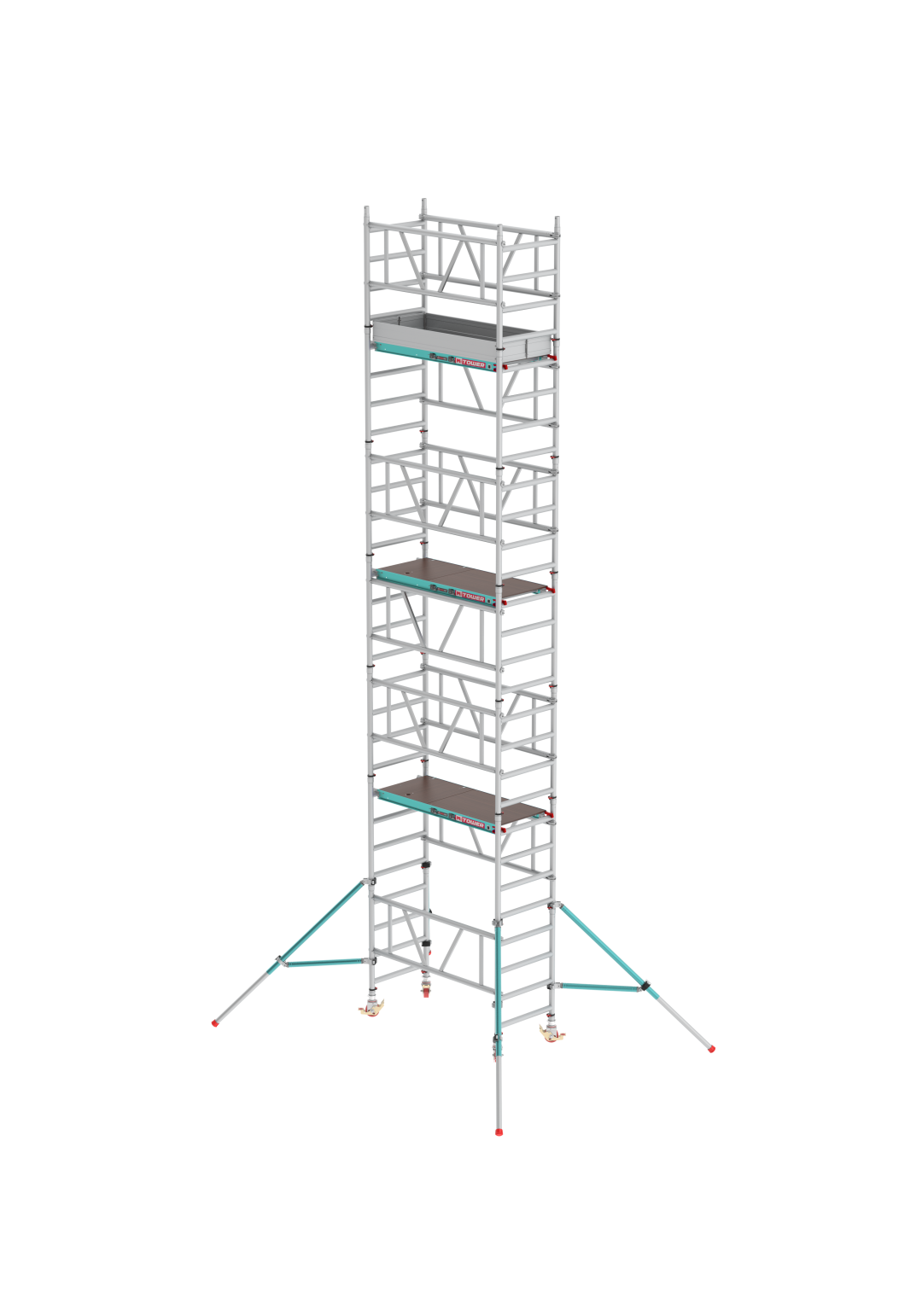 Het slimme ontwerp zorgt ervoor dat je de steiger stap voor stap veilig opbouwt tot een werkhoogte van 7 meter. Dwarsliggers en het unieke ophangsysteem in de platformen geven extra grip en stabiliteit, terwijl dubbele leuningschoren en dubbelgeremde wielen zorgen voor maximale veiligheid en stevigheid.