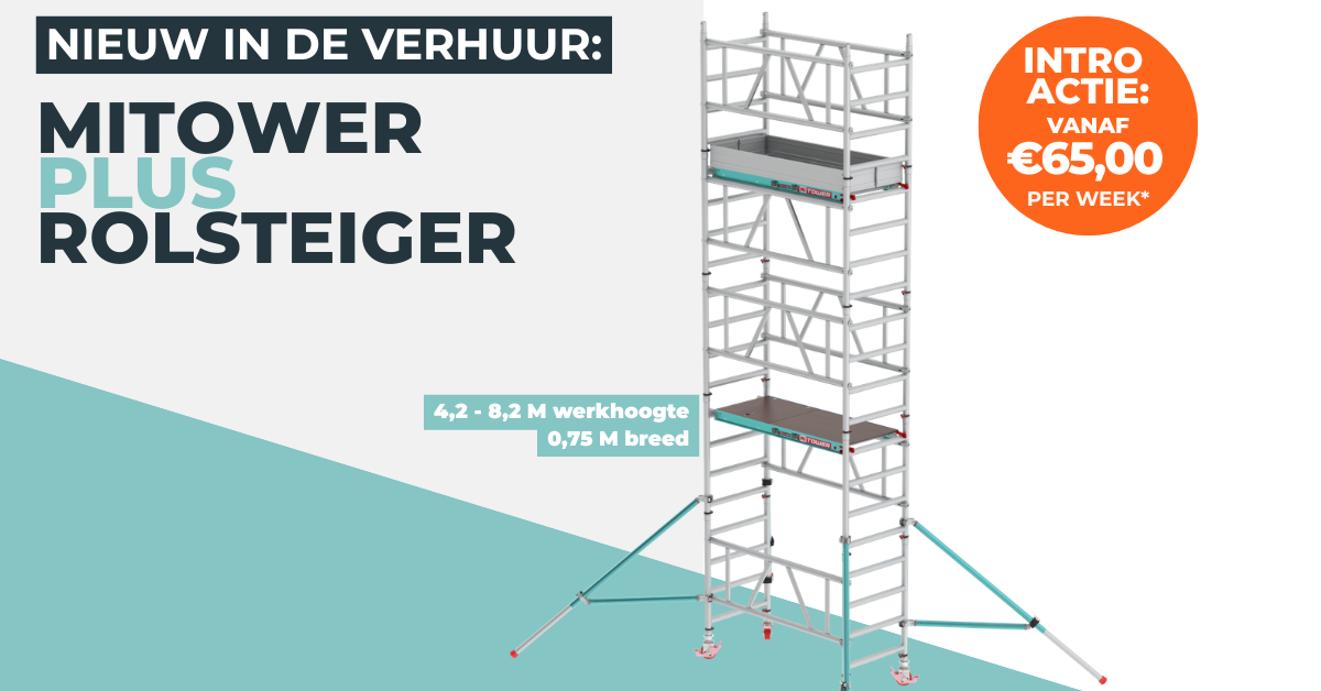 Wil je snel en veilig werken op hoogte? Vraag direct een offerte aan voor de MiTOWER Plus Rolsteiger en ontvang snel een passend voorstel. Nu met INTRO ACTIE vanaf 65,00 euro per week*