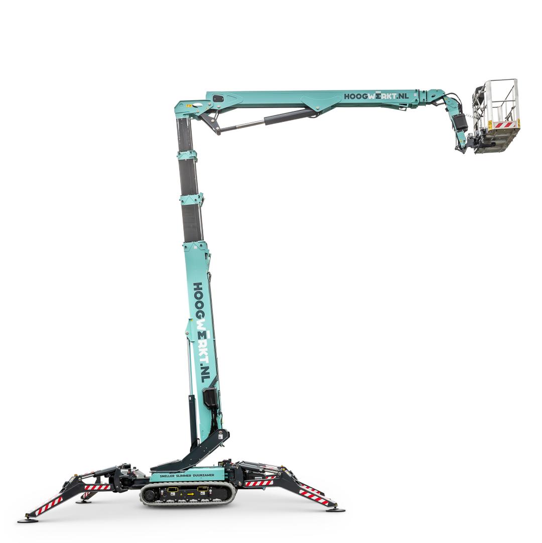 De Hinowa SP15 spinhoogwerker (kniktelescoop) is volledig elektrisch te bedienen.